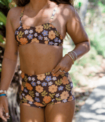 High-waisted shorts with no centre front seam = no camel toe. Full bum coverage. This is not a cheeky short.