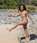 For all you vintage loving gals! Accentuate your curves and channel your inner "Gidget". This vintage inspired bathing suit allows you to do more than just bathe! This low boy-leg cut gives you full coverage front and back. Designed with style, comfort and function in mind; this one piece is great for all watersports! and for generally looking ultra chic. You can order this style with a zip back instead of a tie if you prefer (simply request this in the customer notes/ instructions box at checkout)