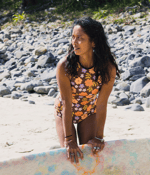 Vintage Onepiece (Vintage Leg) - Orange Flower